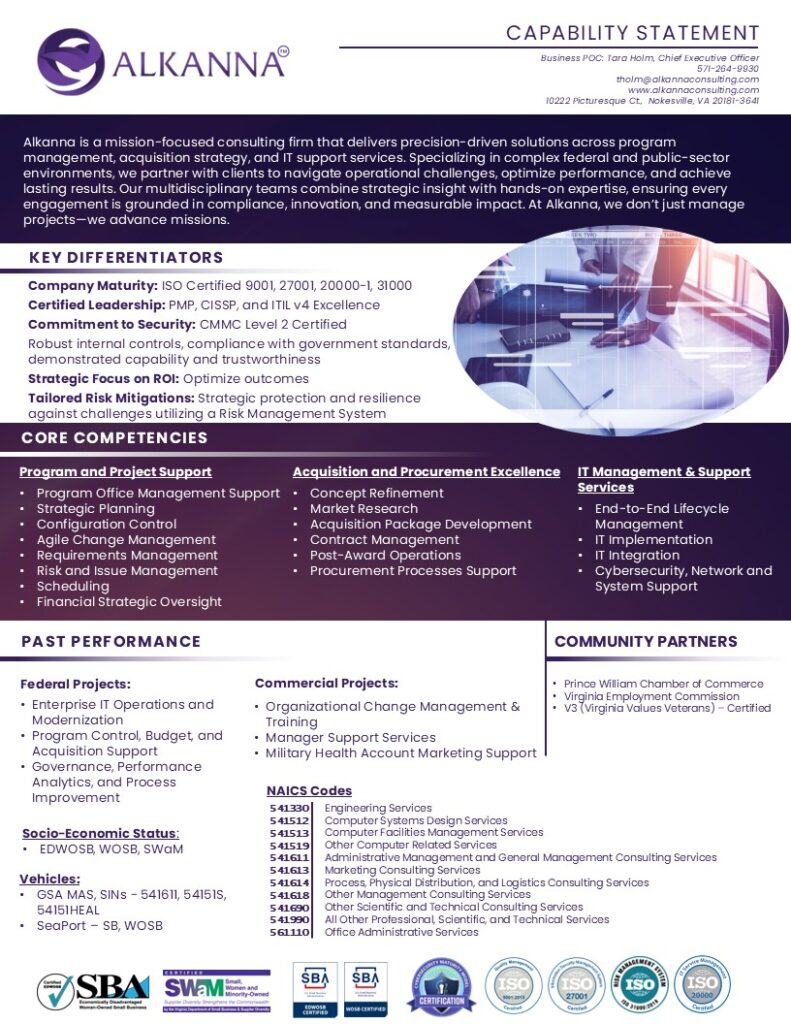 At Alkanna, we believe in providing our clients, partners, and stakeholders with transparent and accessible resources that showcase our commitment to excellence and innovation. Explore the various elements on this page to gain valuable insights into our capabilities, certifications, contracts, and more.